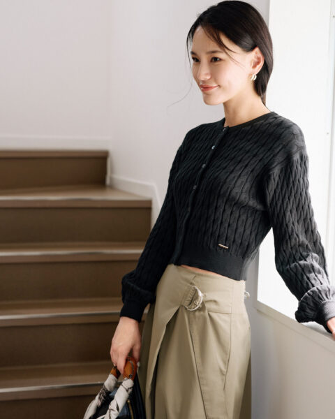 袖はボリュームのあるシルエットで今年らしいムードに着こなせる一枚です。