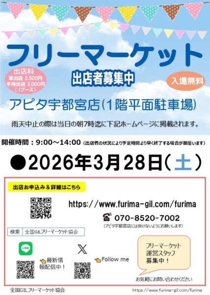 TEL 070-8520-7002(アピタ宇都宮店には掛けないようにお願いします)