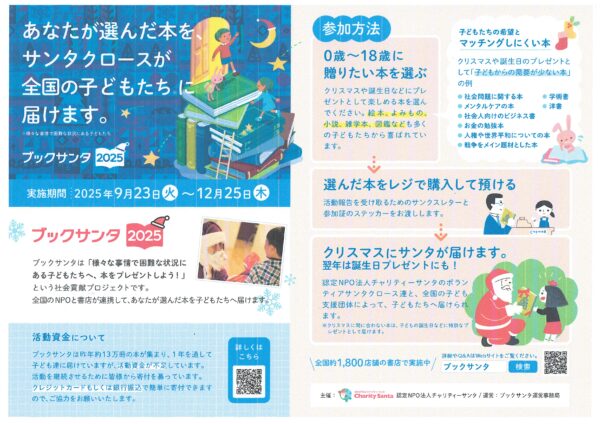当店でもサンタさんからの本を受付中です 全国の子どもたちに本のプレゼントを贈ります