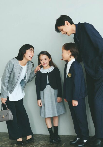 正統派ネイビーがベースなら家族みんなで凛と華やぐ。