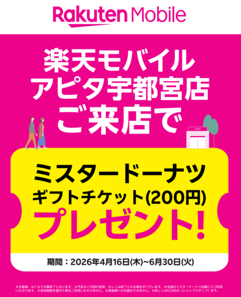 期間中、楽天モバイルアピタ宇都宮店にご来店いただいたお客様に、