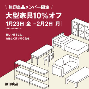 【無印良品】メンバー限定「大型家具10%オフ」開催のお知らせ
